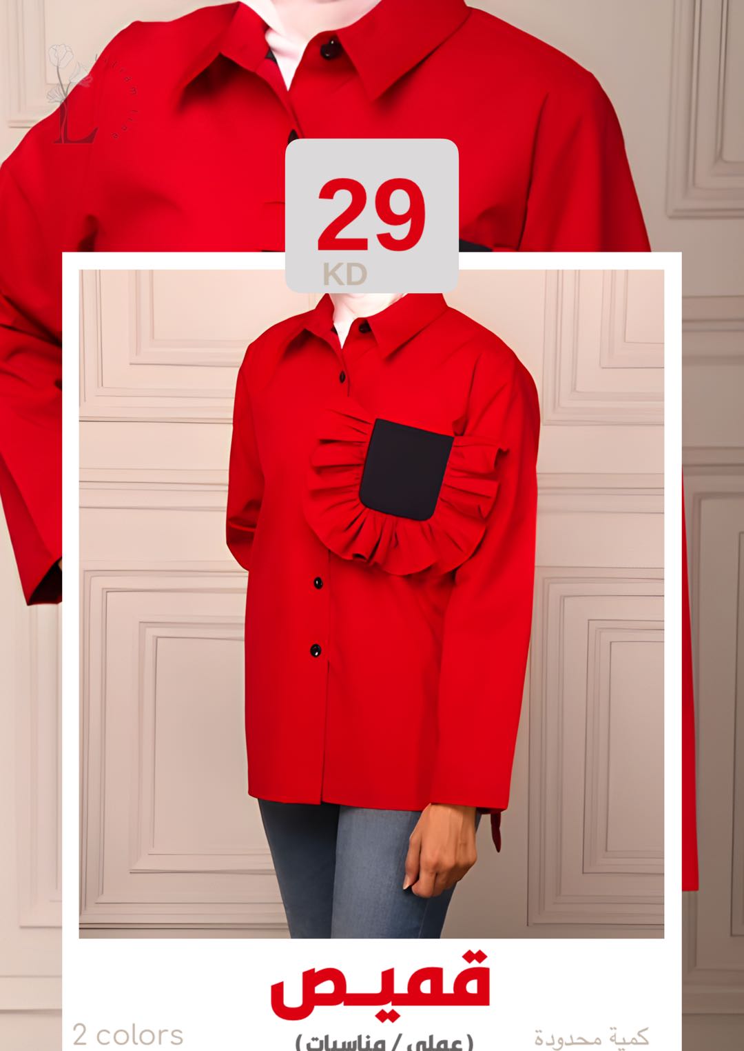 قميص عملي مطرز بالرفلز باللون الأحمرالتفاصيل